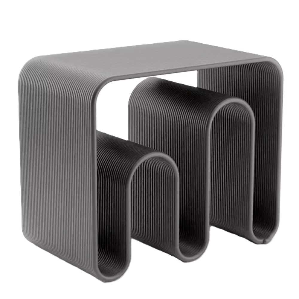 Eburet озабочены проблемой загрязнения планеты, поэтому выбрали для своих исследований тему вторичной переработки. Их предметы от 25 до 70% состоят из вторичного материала. Корпус мебели создан из вторичного полистирола PS (6), который является остатком йогуртового производства. Бирки напечатаны из вторичного пвх PVC (3) – бывших надувных лодок.