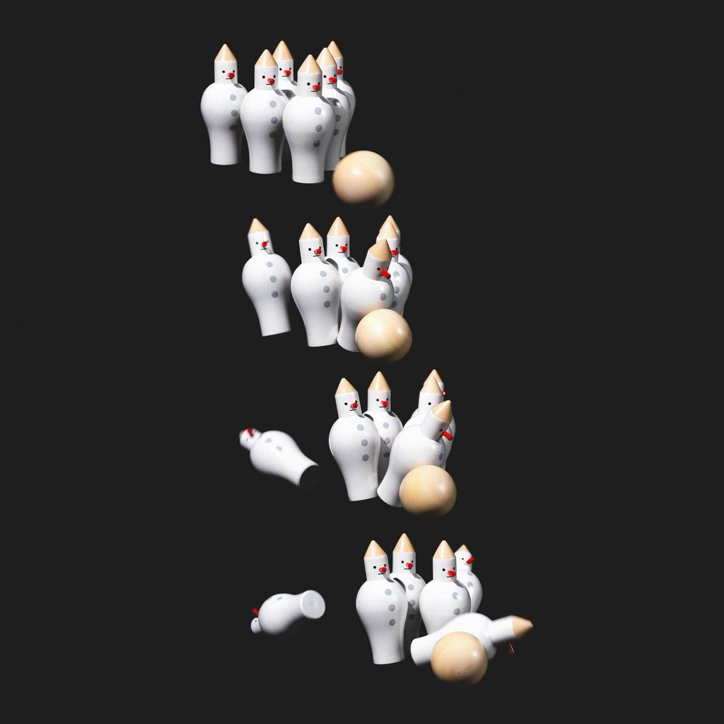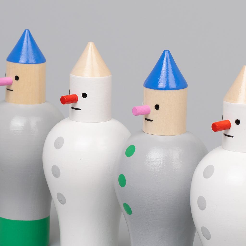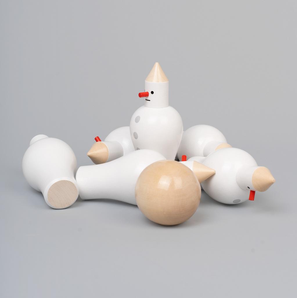 Набор фигурок для игры в мини боулинг: шесть деревянных кеглей в виде снеговиков или человечков на выбор (+ шарик!).