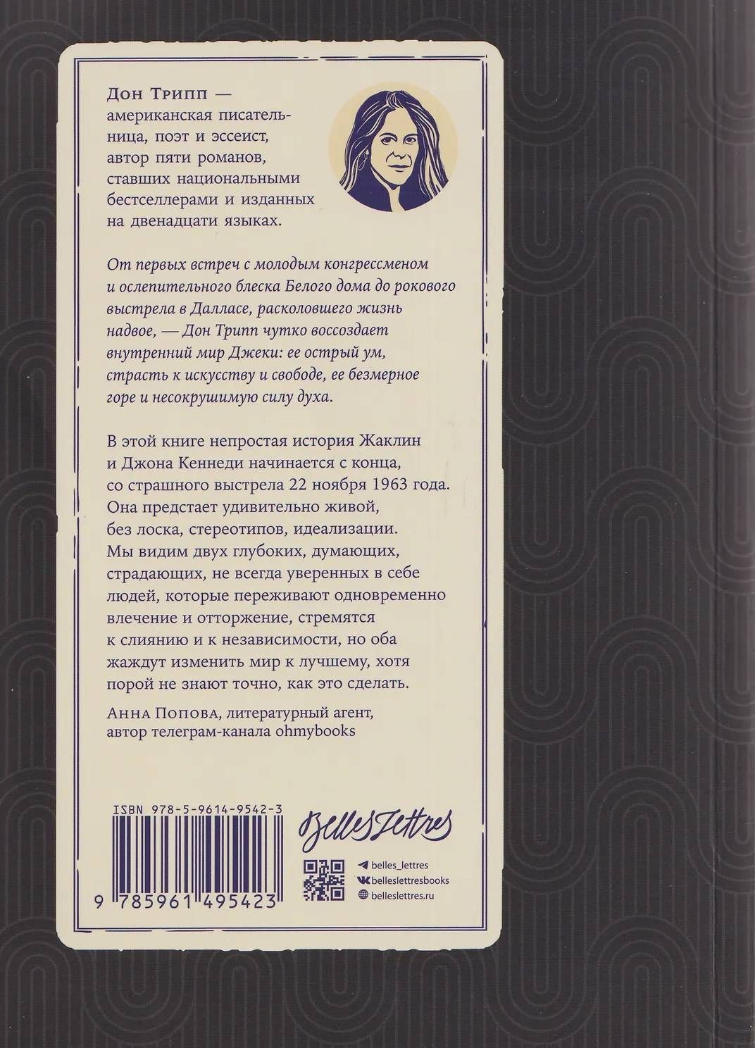 Опираясь на многочисленные документы и свидетельства о жизни героини, Дон Трипп то и дело отходит от них, чтобы дать слово самой Джеки и исследовать ее внутренний мир. Это повествование о боли утрат и внутренней силе, о браке и трагедии, которая перечеркнула всё, и о том, как Жаклин стремилась сохранить себя. Но прежде всего это роман о многогранной личности, которую невозможно свести к одной роли: Джеки, Джекс, мисс Бувье, миссис Кеннеди. «Все эти имена важны, — говорит героиня, — но ни одно не описывает меня полностью».