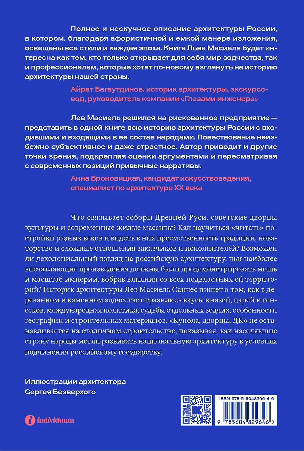 Что связывает соборы Древней Руси, советские дворцы культуры и современные жилые массивы? Как научиться «читать» постройки разных веков и видеть в них преемственность традиции, новаторство и сложные отношения заказчиков и исполнителей? Возможен ли деколониальный взгляд на российскую архитектуру, чьи наиболее впечатляющие произведения должны были продемонстрировать мощь и масштаб империи, вобрав влияния со всех подвластных ей территорий? Историк архитектуры Лев Масиель Санчес пишет о том, как в деревянном и каменном зодчестве отразились вкусы князей, царей и генсеков, международная политика, судьбы отдельных зодчих, особенности географии и строительных материалов. «Купола, дворцы, ДК» не останавливается на столичном строительстве, показывая, как населявшие страну народы могли развивать национальную архитектуру в условиях подчинения российскому государству.