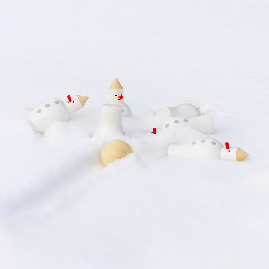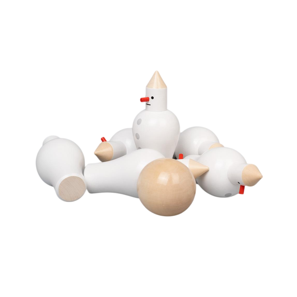 Набор фигурок для игры в мини боулинг: шесть деревянных кеглей в виде снеговиков или человечков на выбор (+ шарик!).