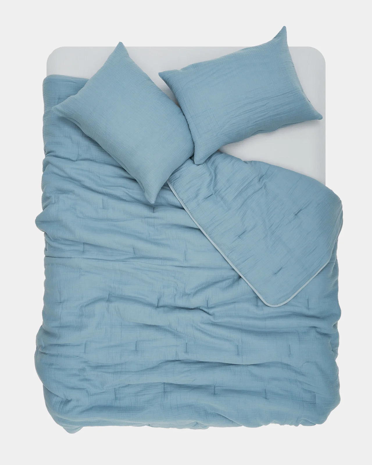 Материал наволочки – четырехслойный муслин. Благодаря особому переплетению нитей ткань теплая, но не жаркая. Нежная текстура муслина порадует даже самую чувствительную кожу лица.