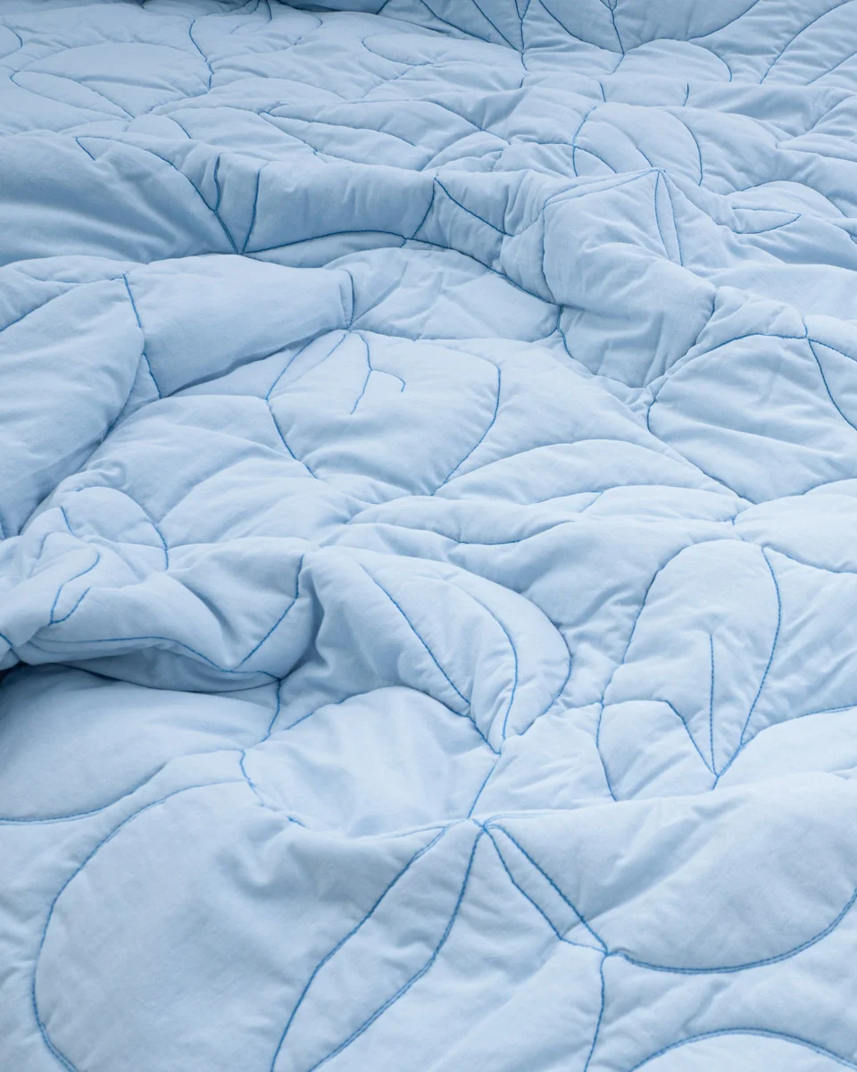 Главная страница / Каталог / Текстиль / Одеяло из вареного хлопка “Голубые незабудки”