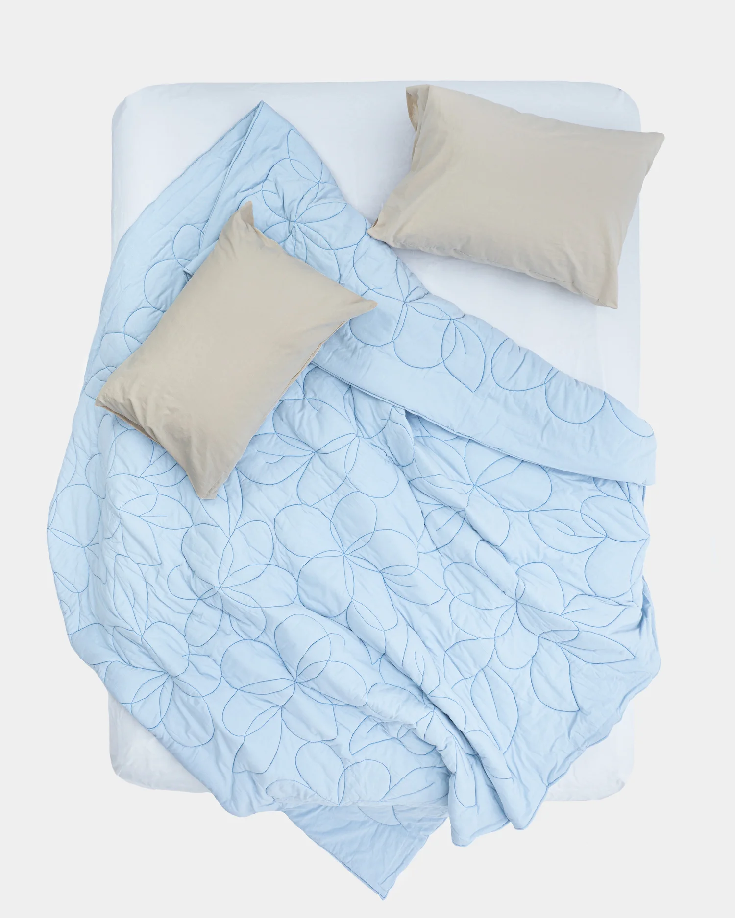 Одеяло можно дополнить простыней и наволочками в тон ткани или используемых для рисунка нитей или собрать необычную комбинацию с другими оттенками из нашей большой палитры.