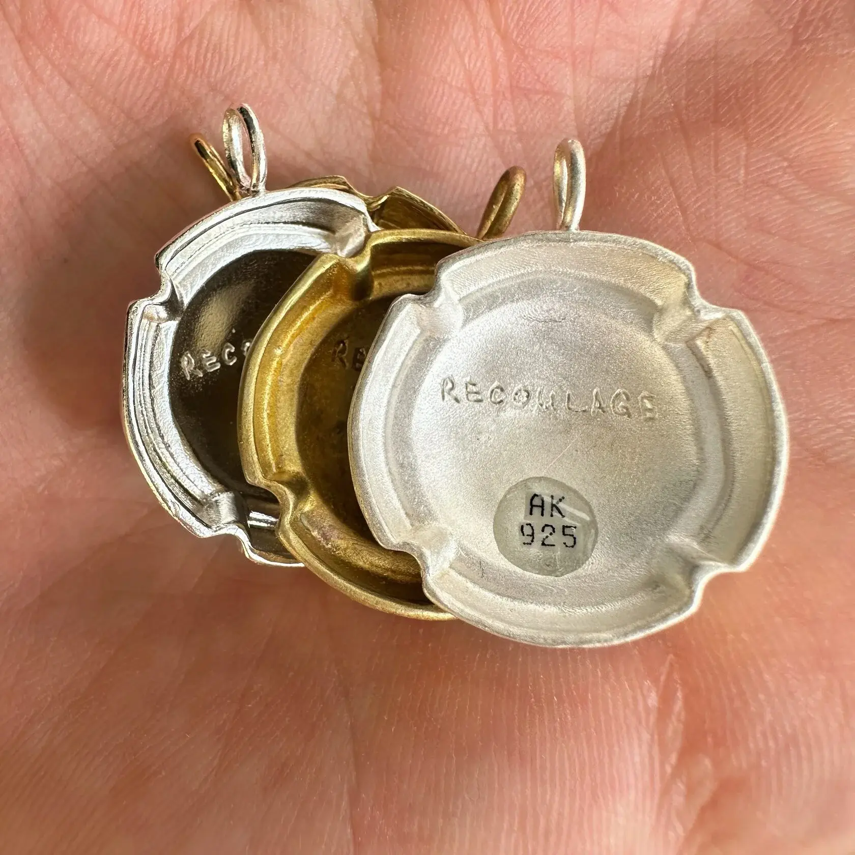 Форма каждого из этих украшений изготовлена вручную из полимерного воска, а затем отлита в металле.