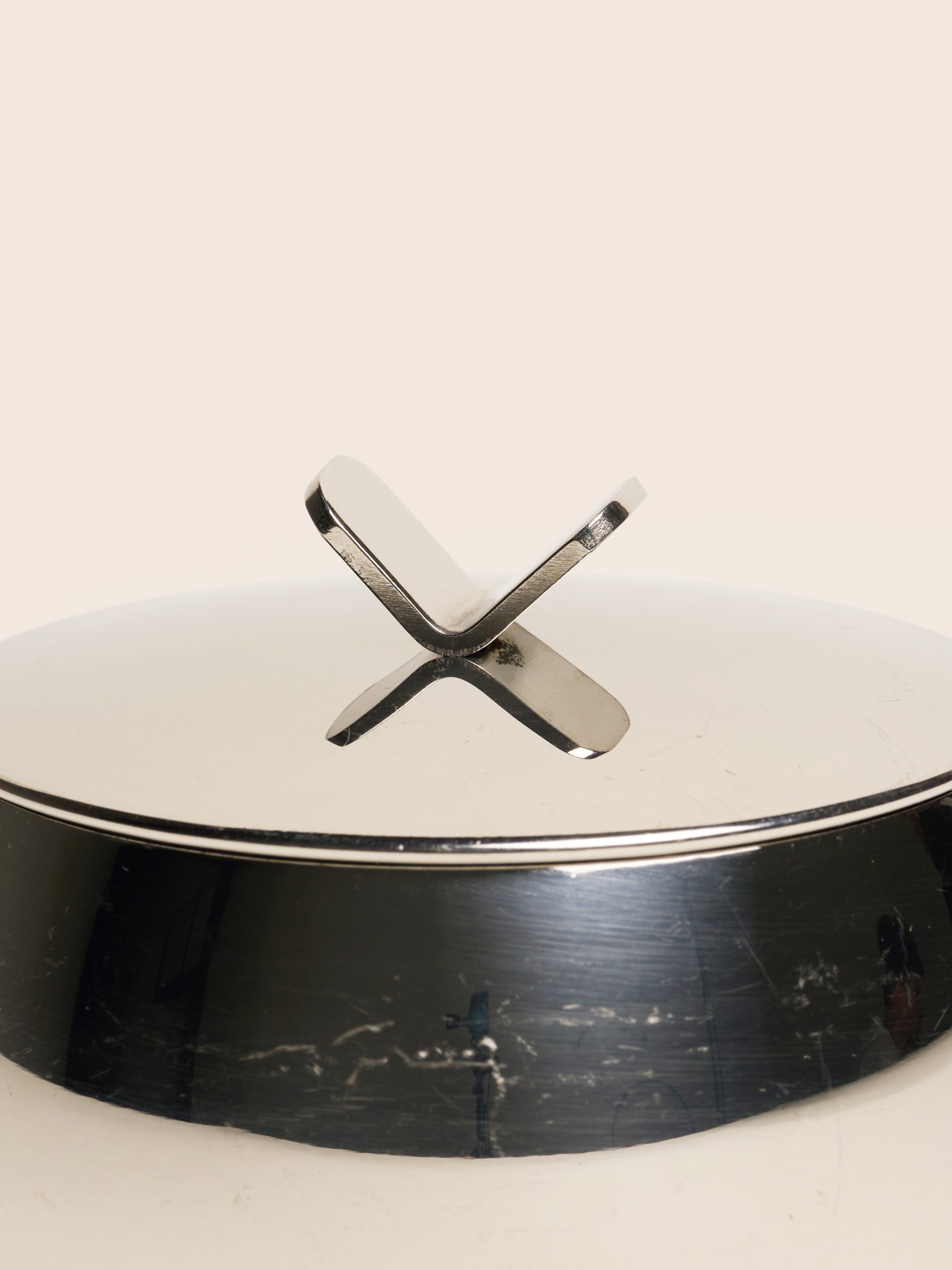 Минималистичная сахарница из полированной нержавеющей стали с крышкой, выполненная во французской мастерской Guy Degrenne.