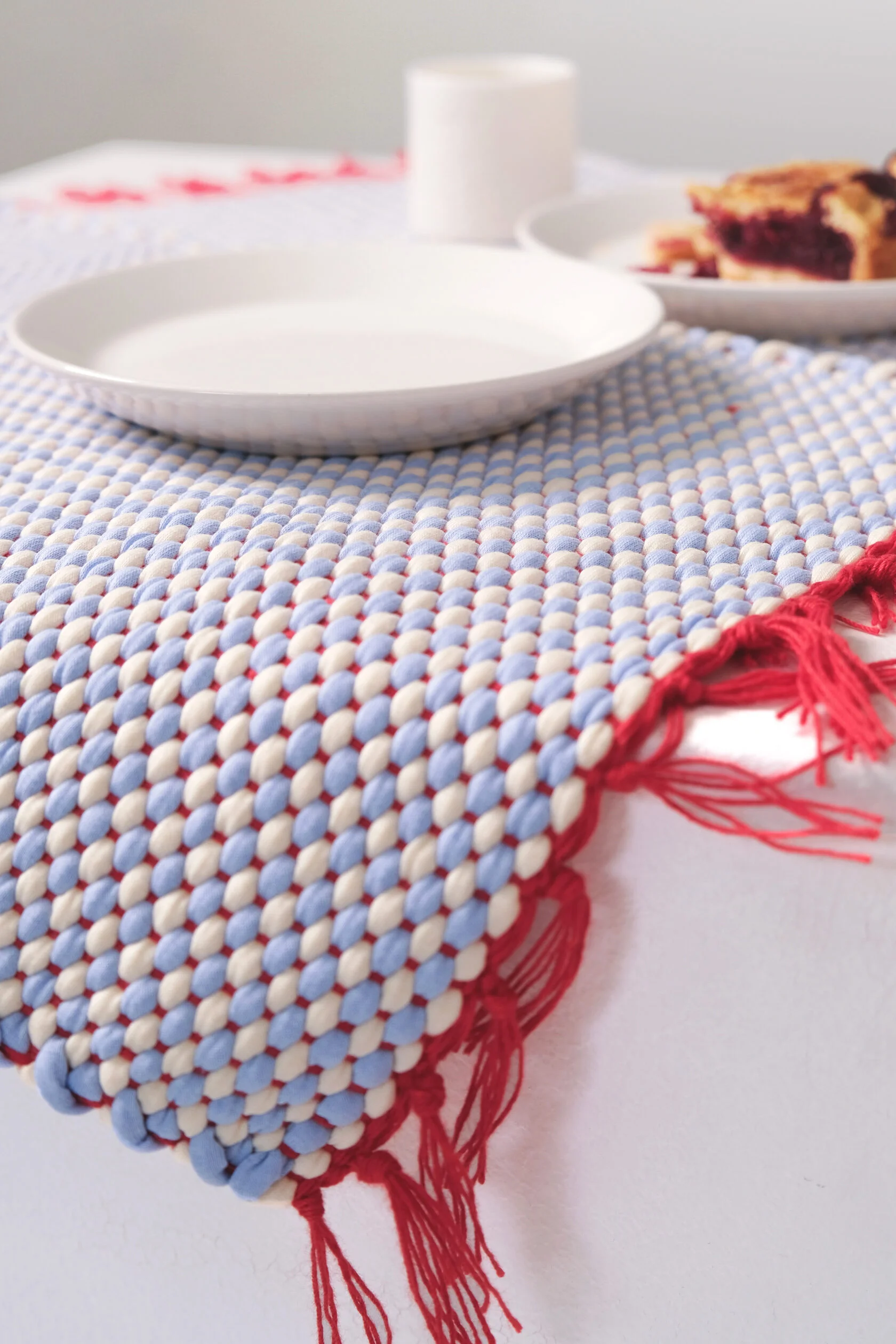 Салфетки для сервировки стола, сотканные вручную из трикотажной пряжи и хлопка. Хорошо подходят для ежедневного использования, когда хочется разнообразить домашнюю обстановку. Могут использоваться, как подставка под горячее.