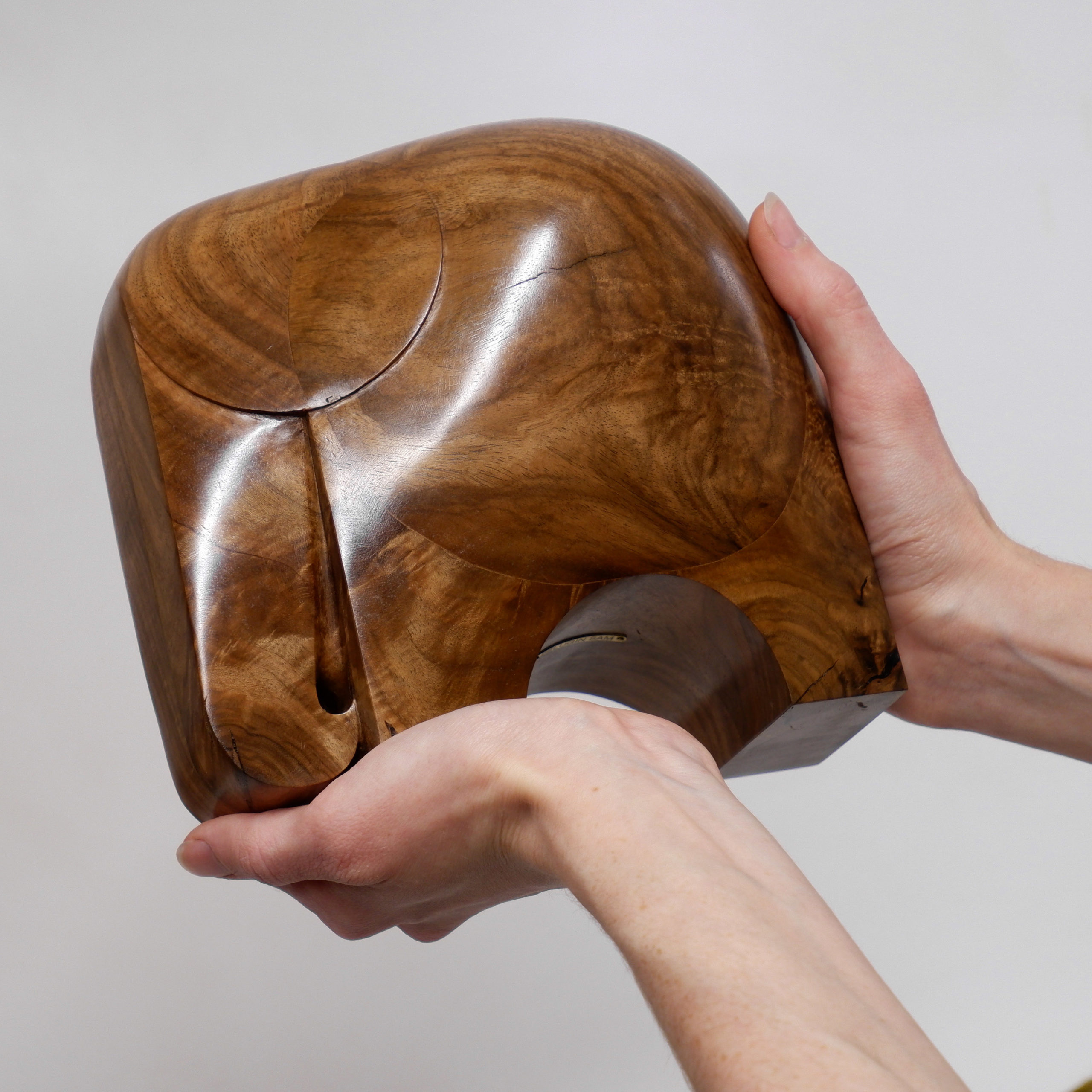Скульптура, сделанная вручную из ценных пород древесины и латуни.