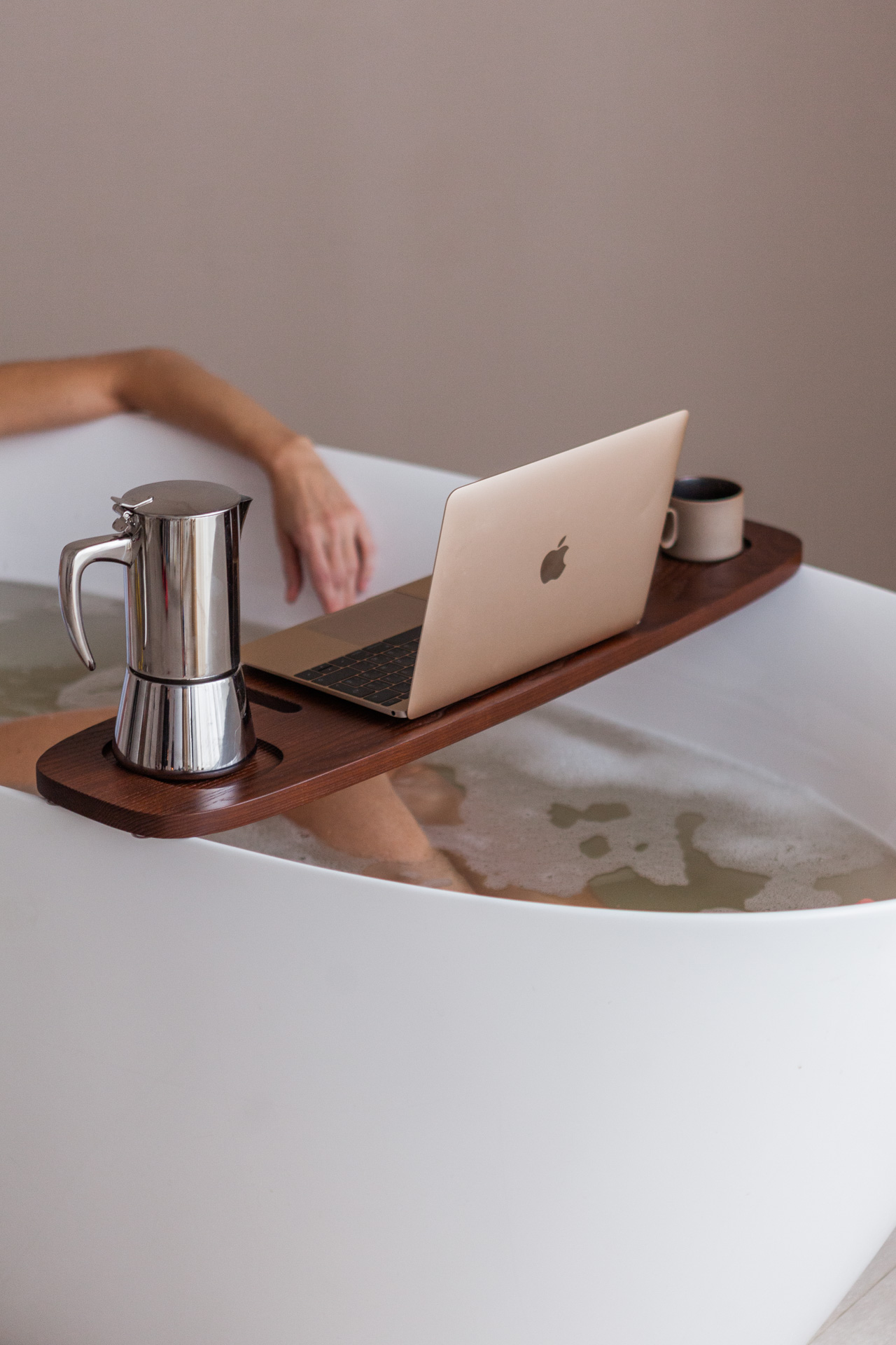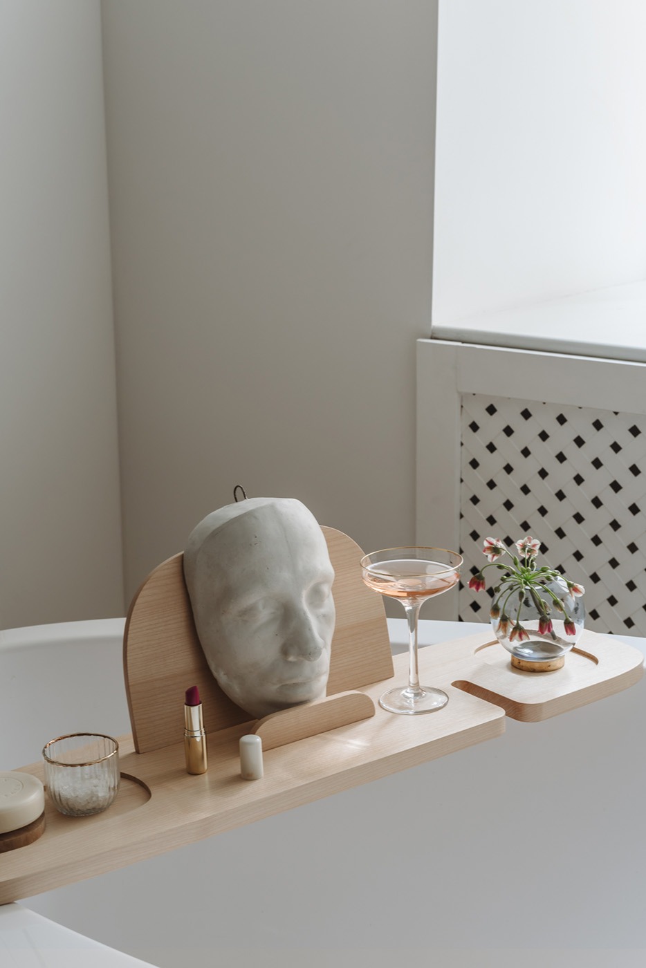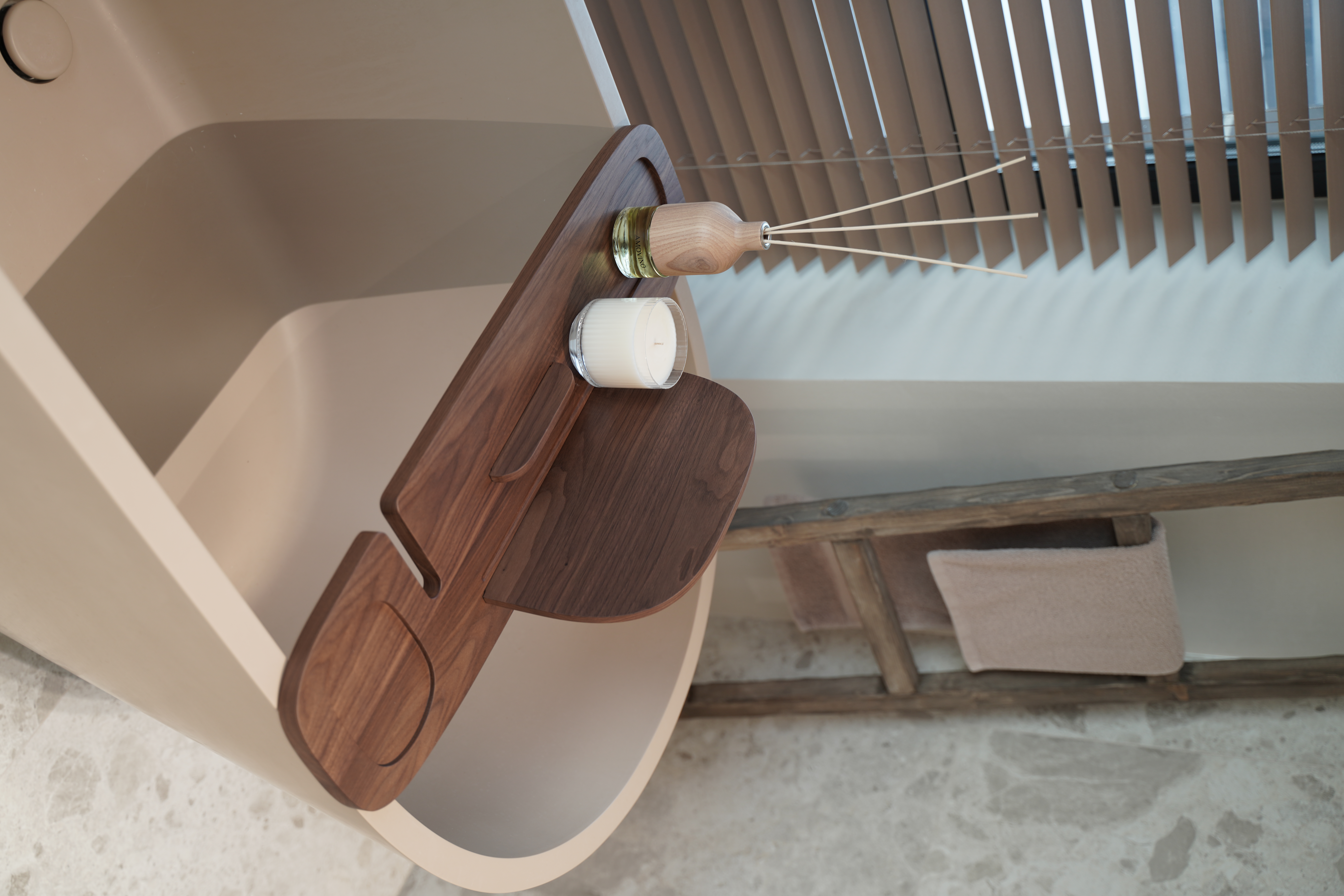 Spa-полка BONUM — флагманский продукт бренда AMOVINO. Полка предназначена для принятия ванны и удобного хранения средств ухода.