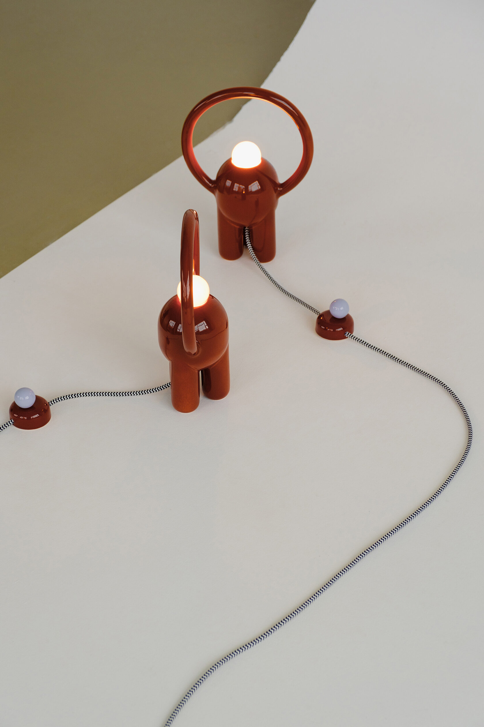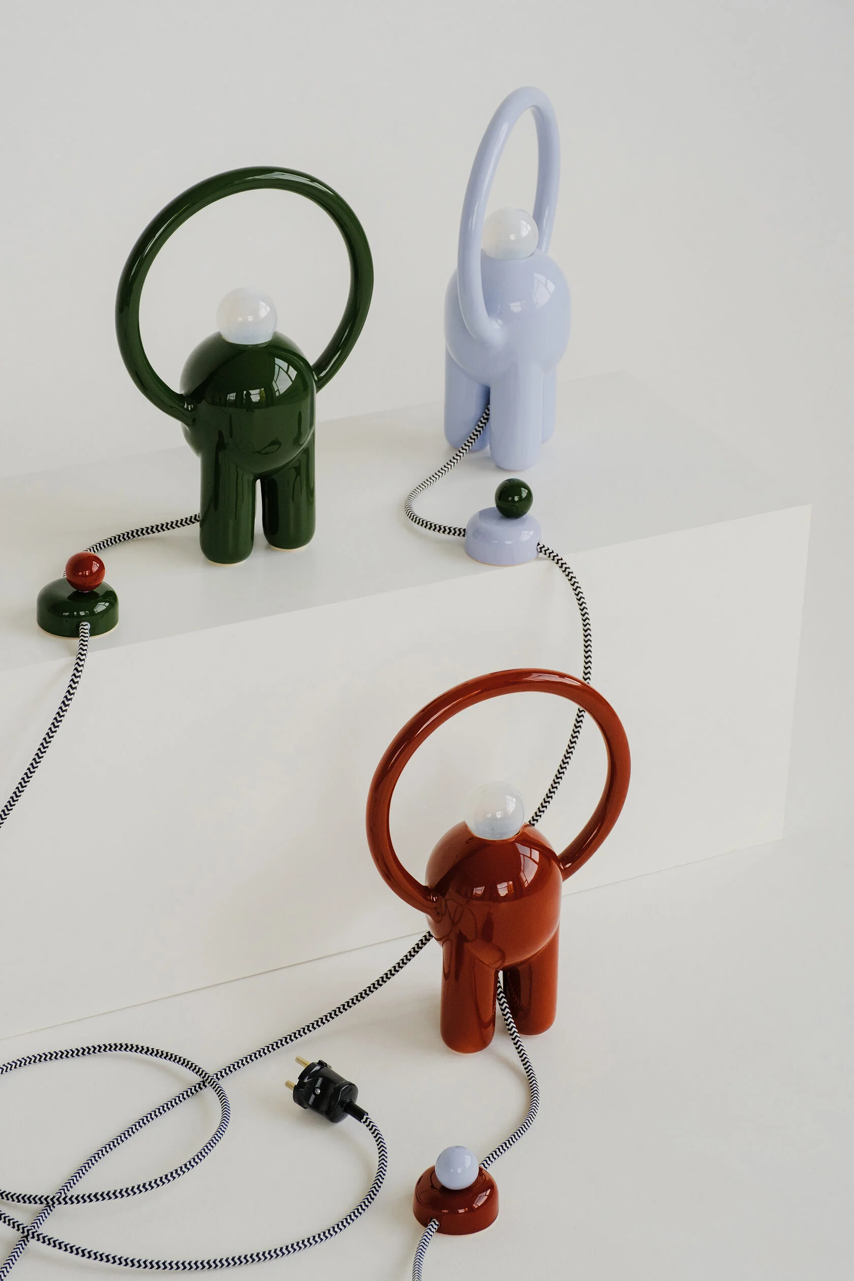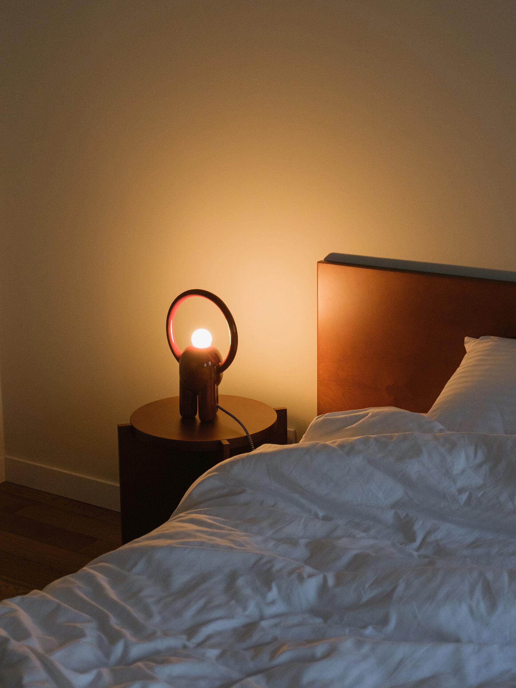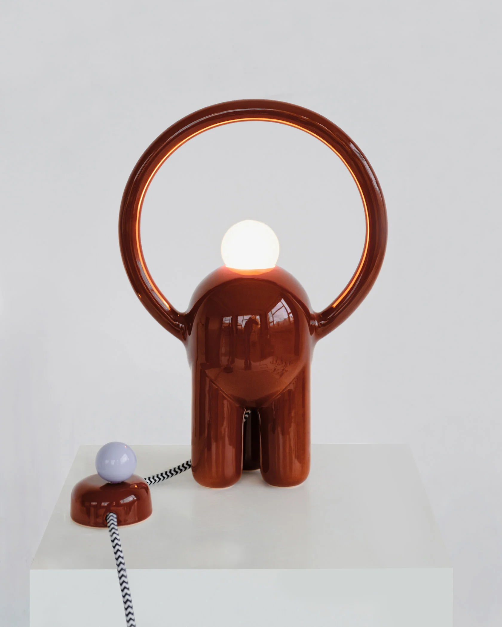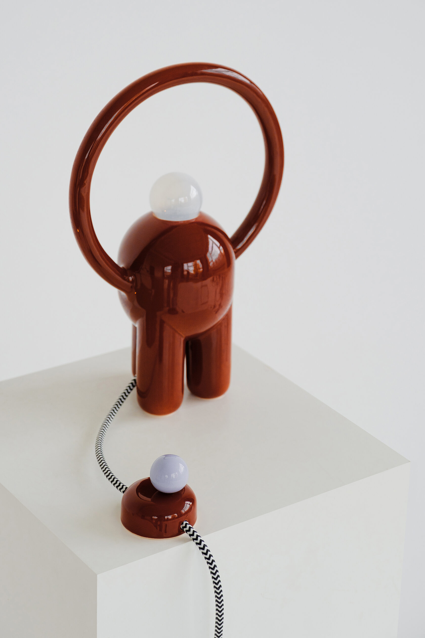 Вся лампа изготовлена вручную в мастерской офо’рме: керамический корпус, диммер в виде отдельного арт-объекта и лампа накаливания с регулируемым тёплым светом.