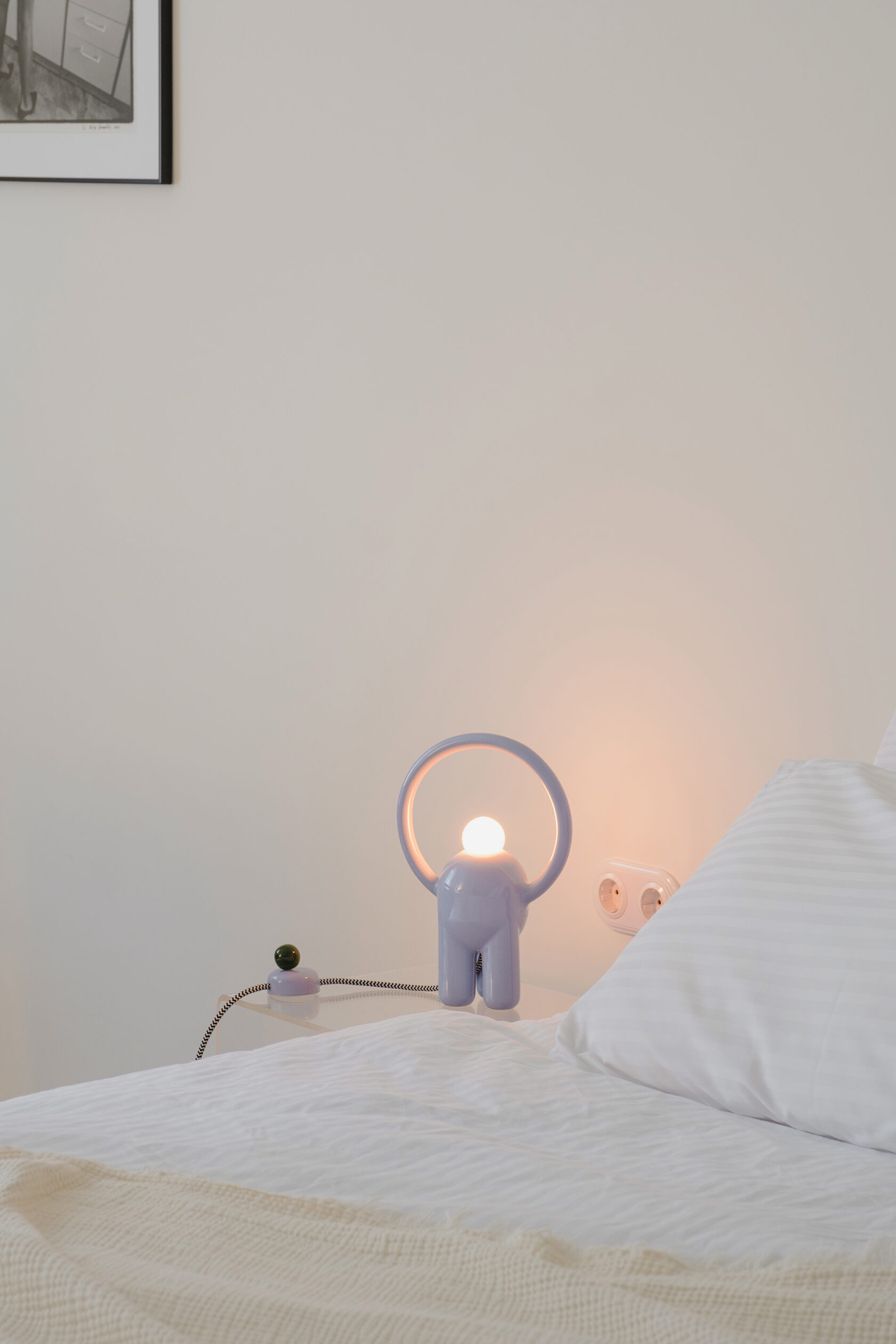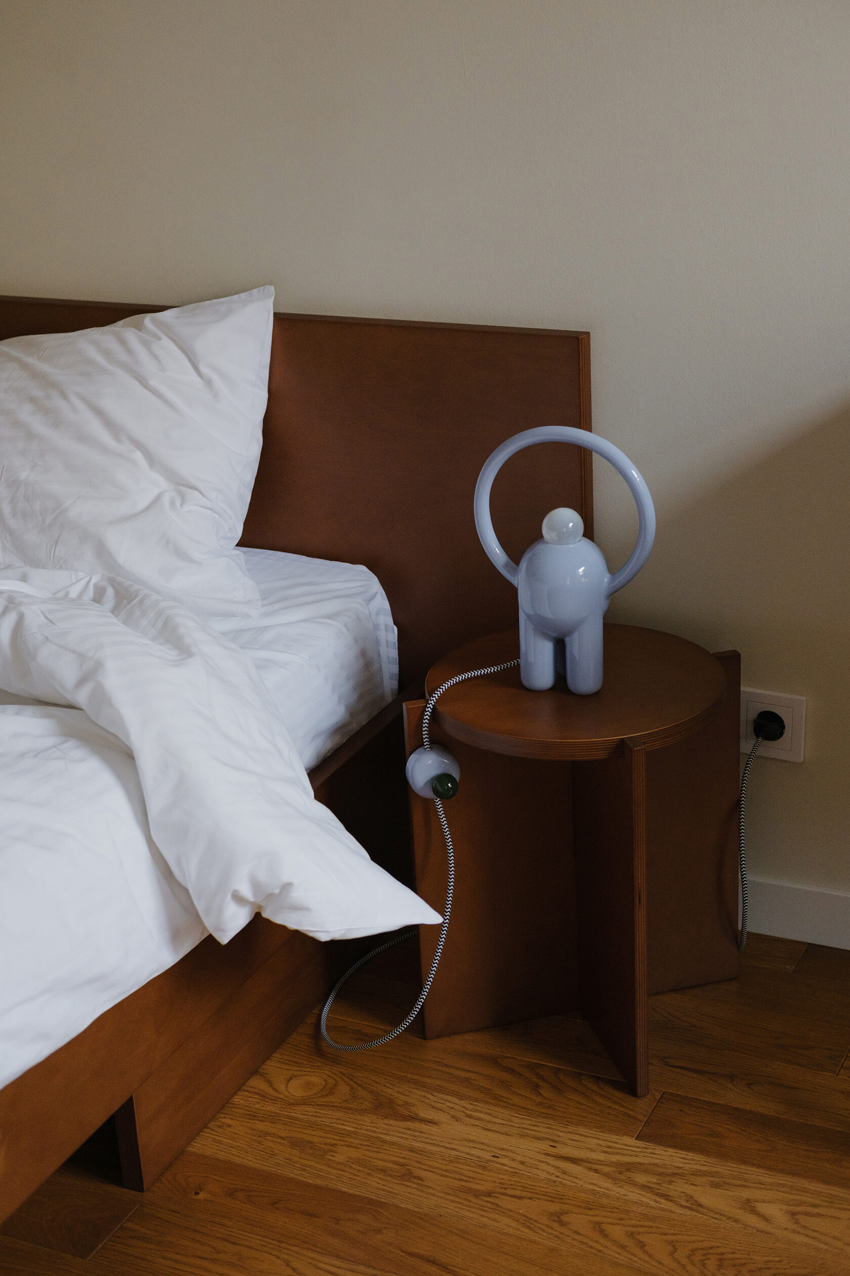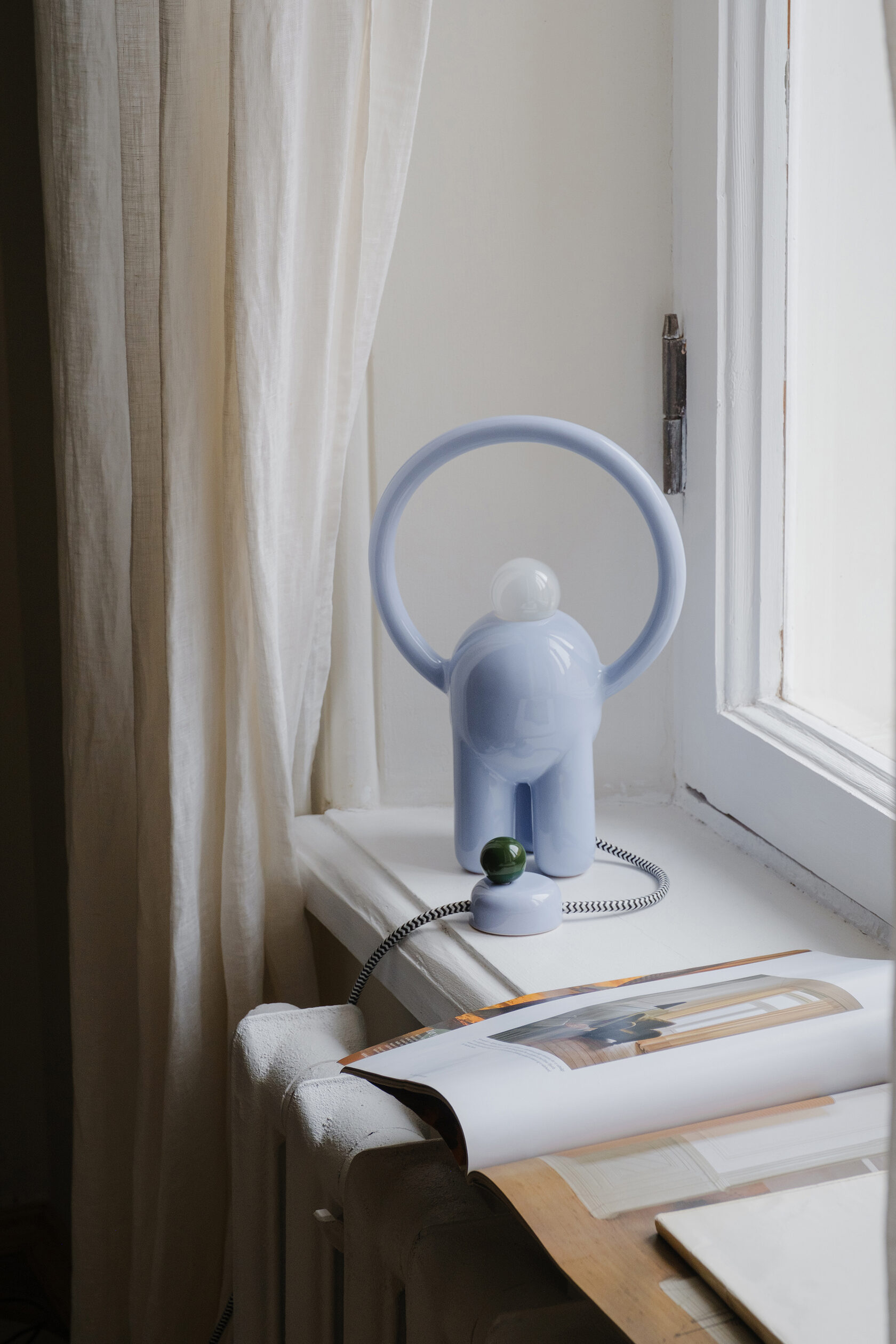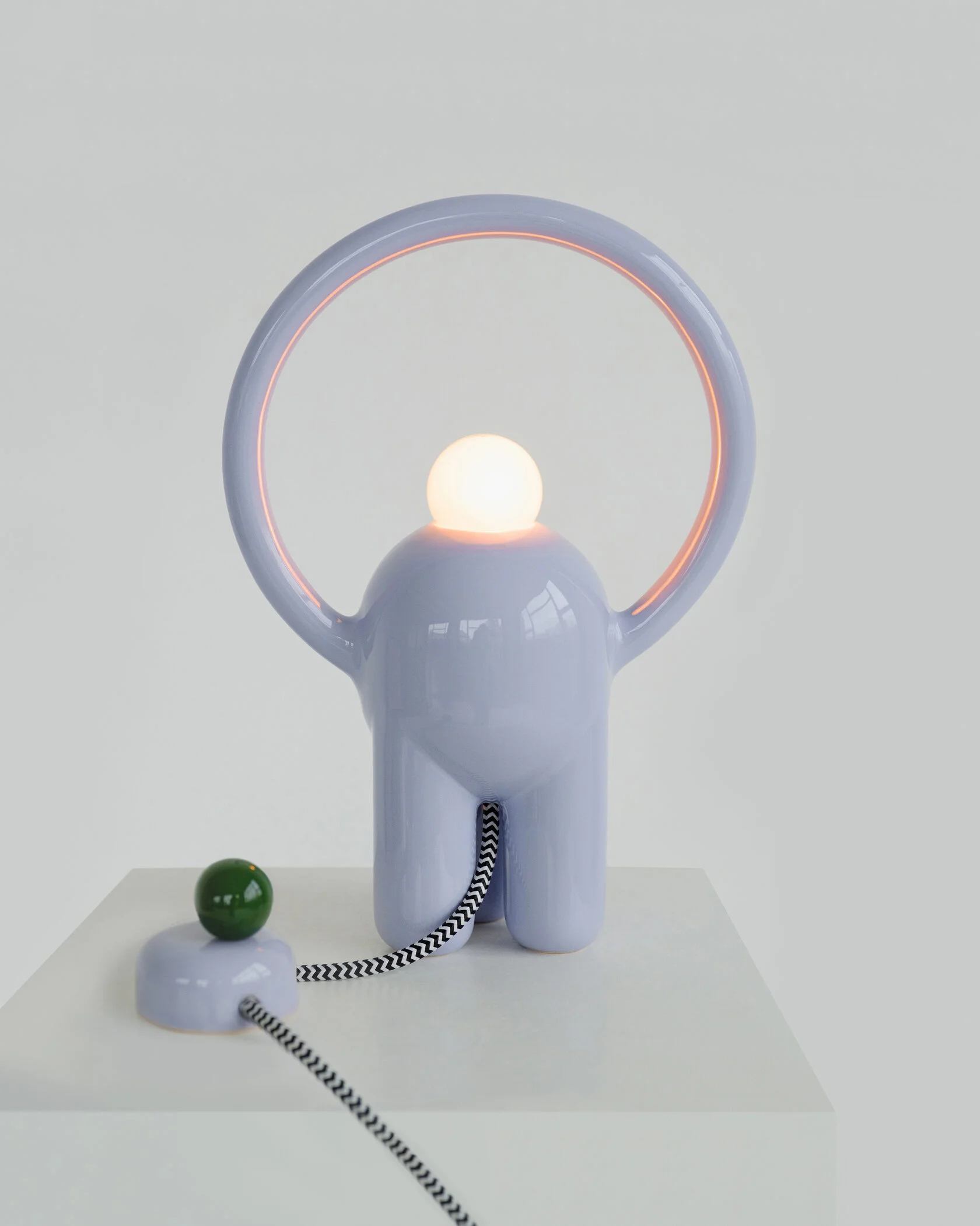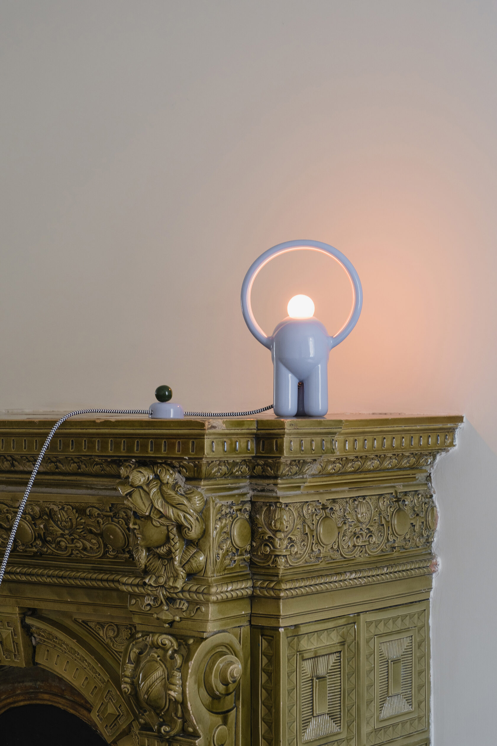 Вся лампа изготовлена вручную в мастерской офо’рме: керамический корпус, диммер в виде отдельного арт-объекта и лампа накаливания с регулируемым тёплым светом.