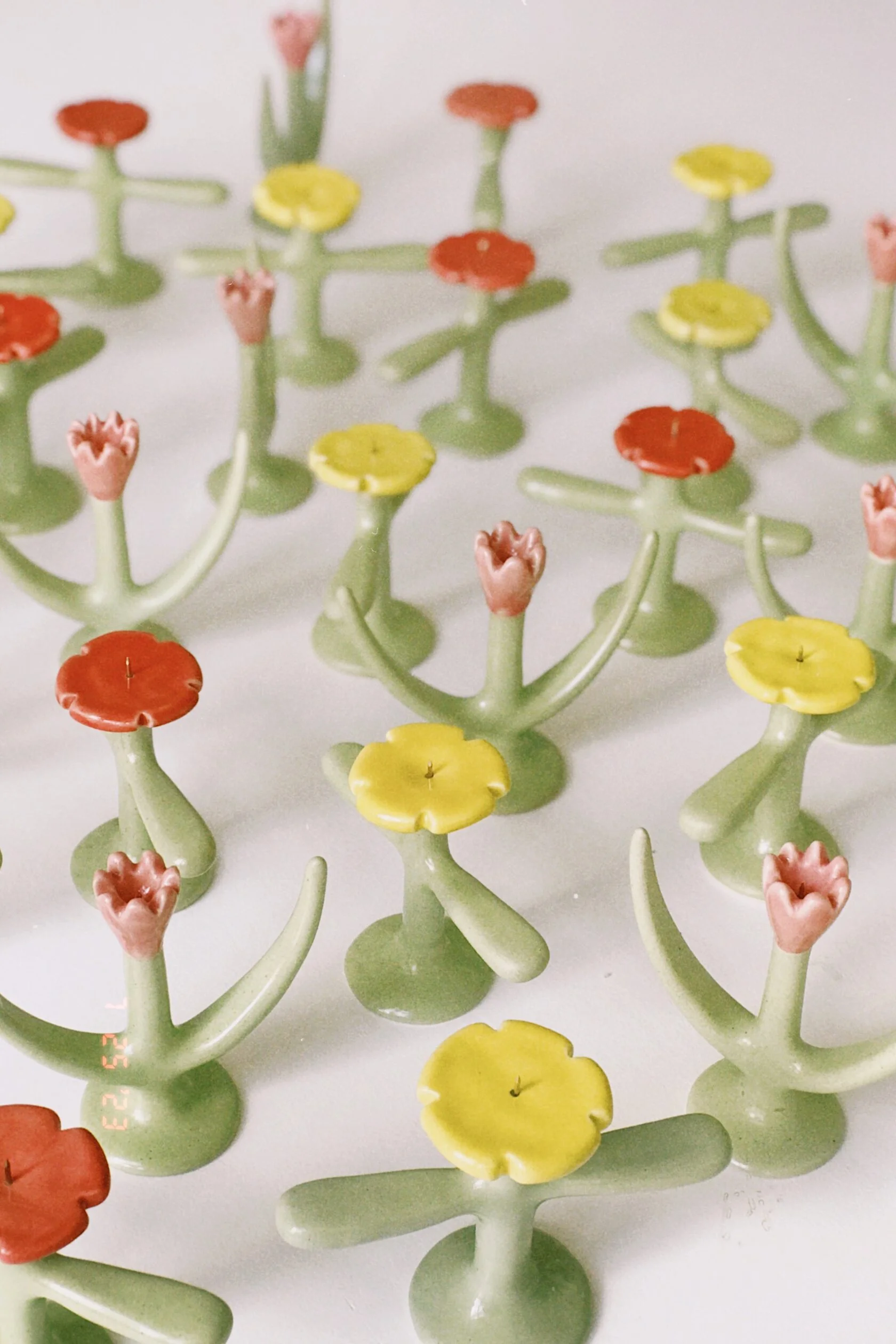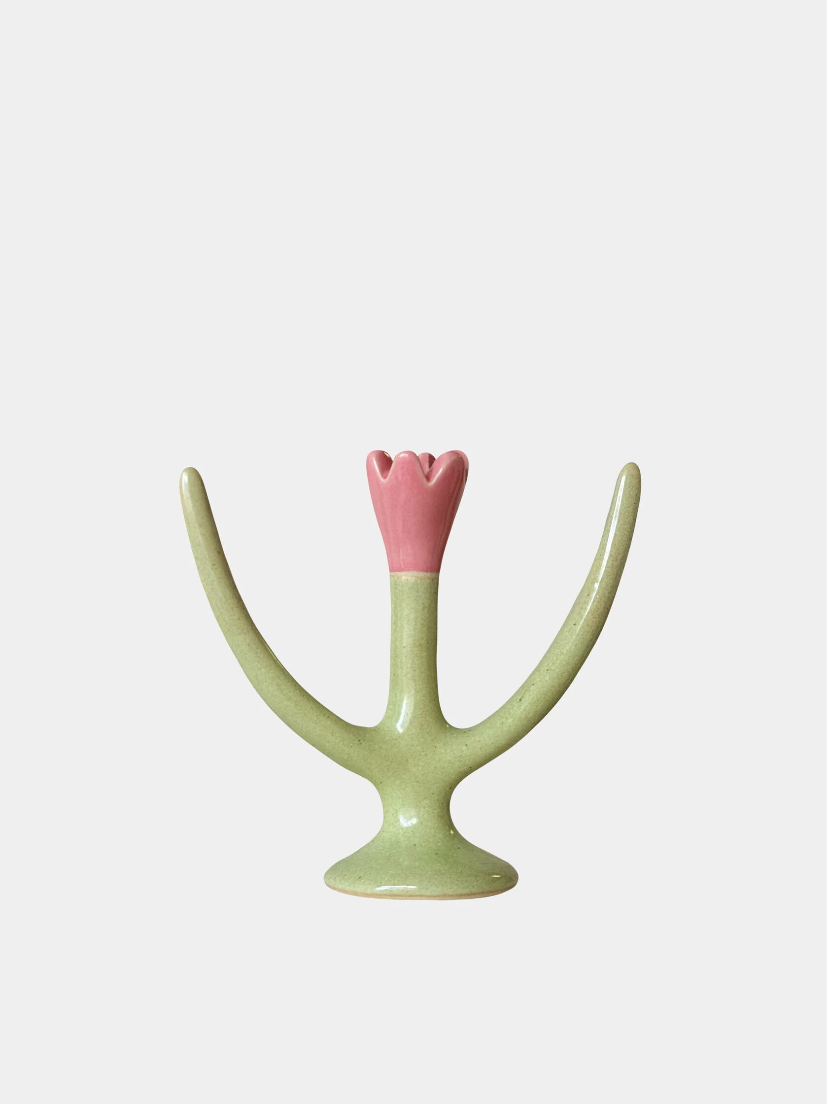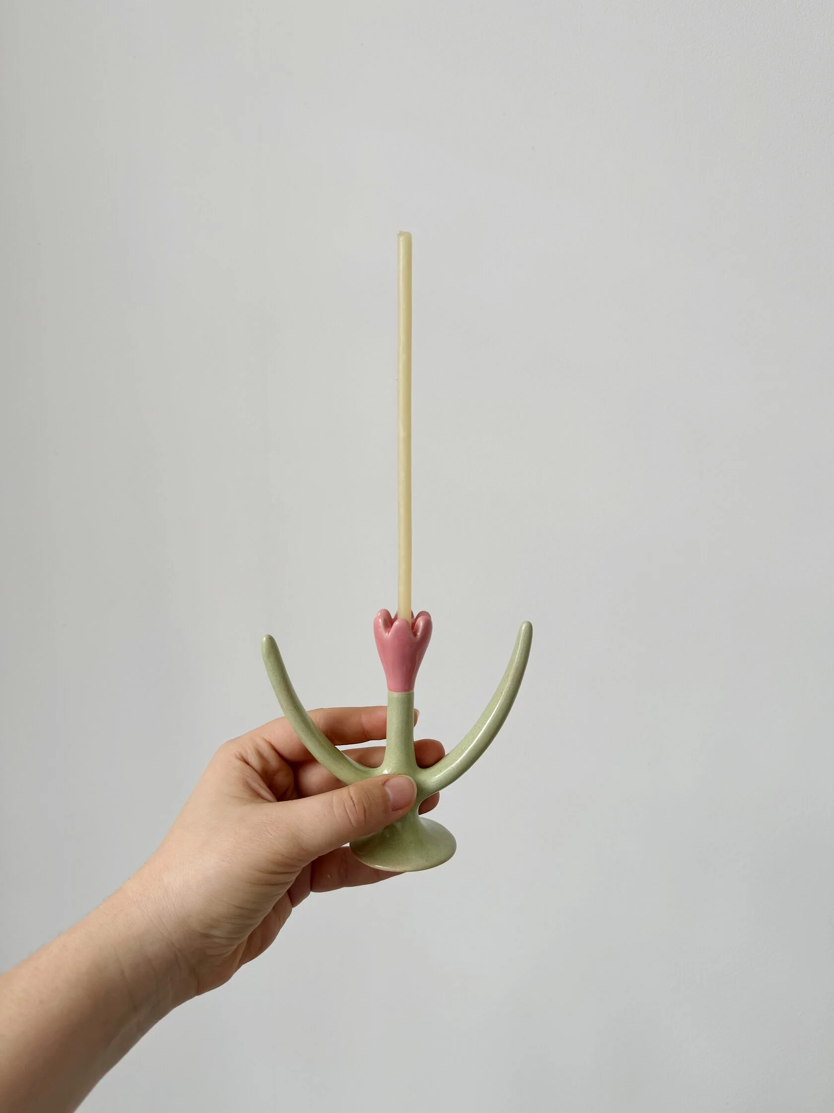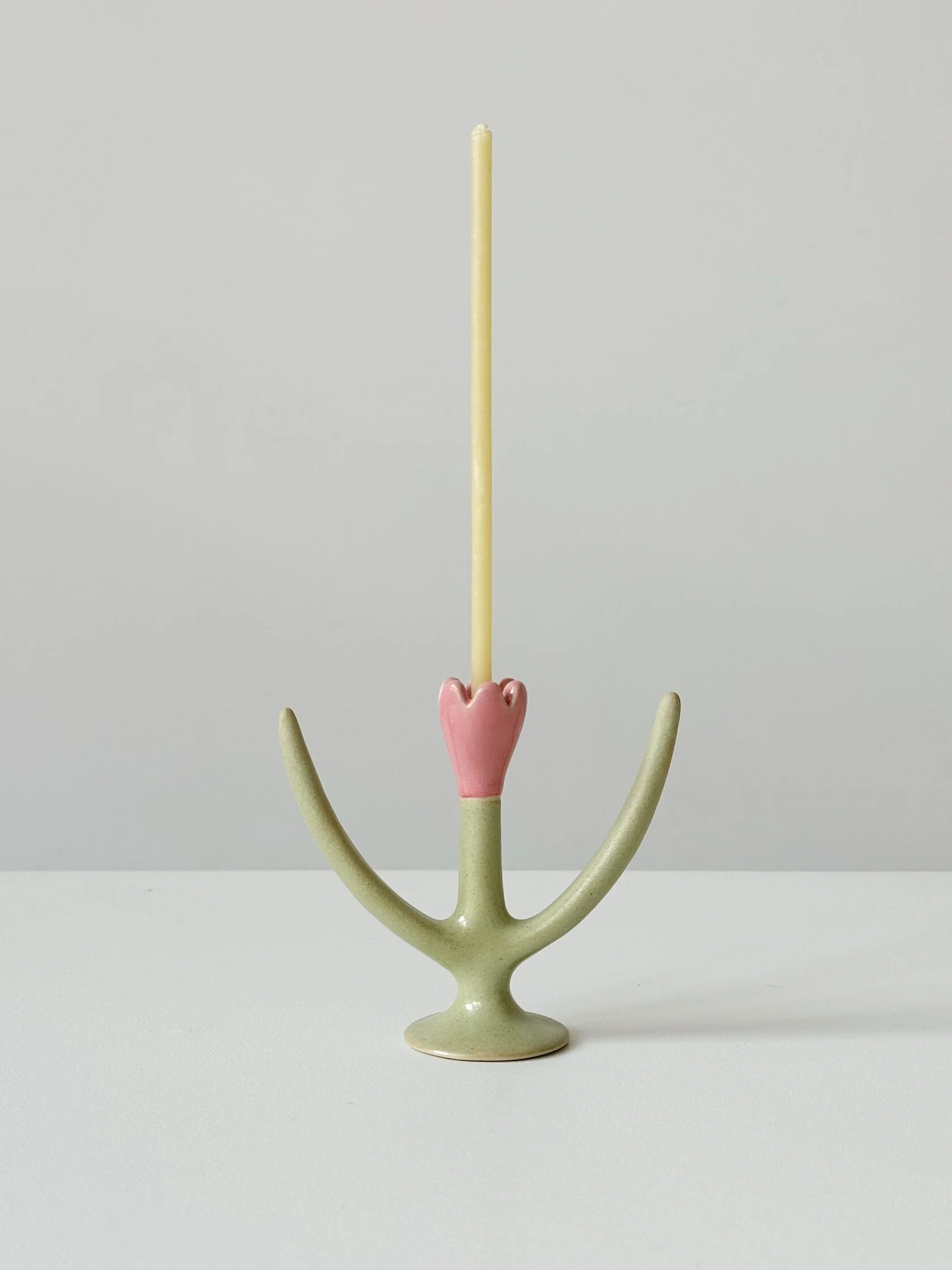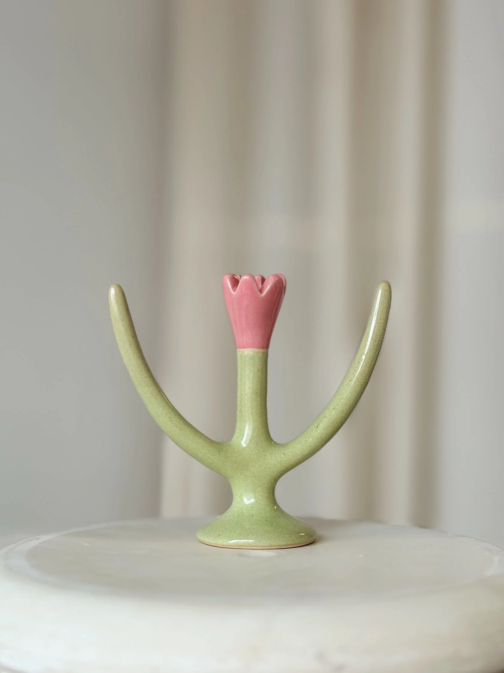 Небольшой скульптурный подсвечник в форме тюльпана, нежный и забавный.