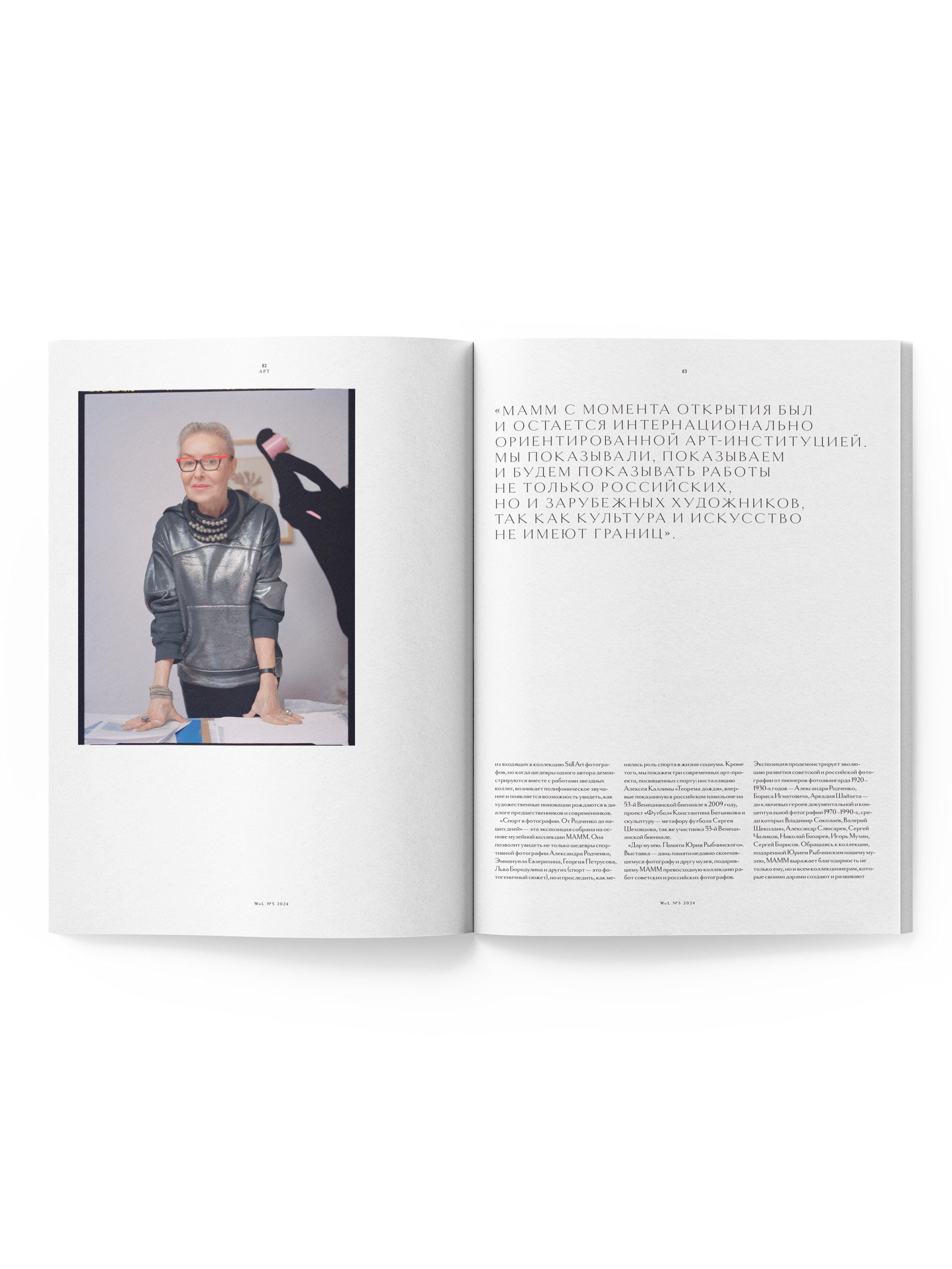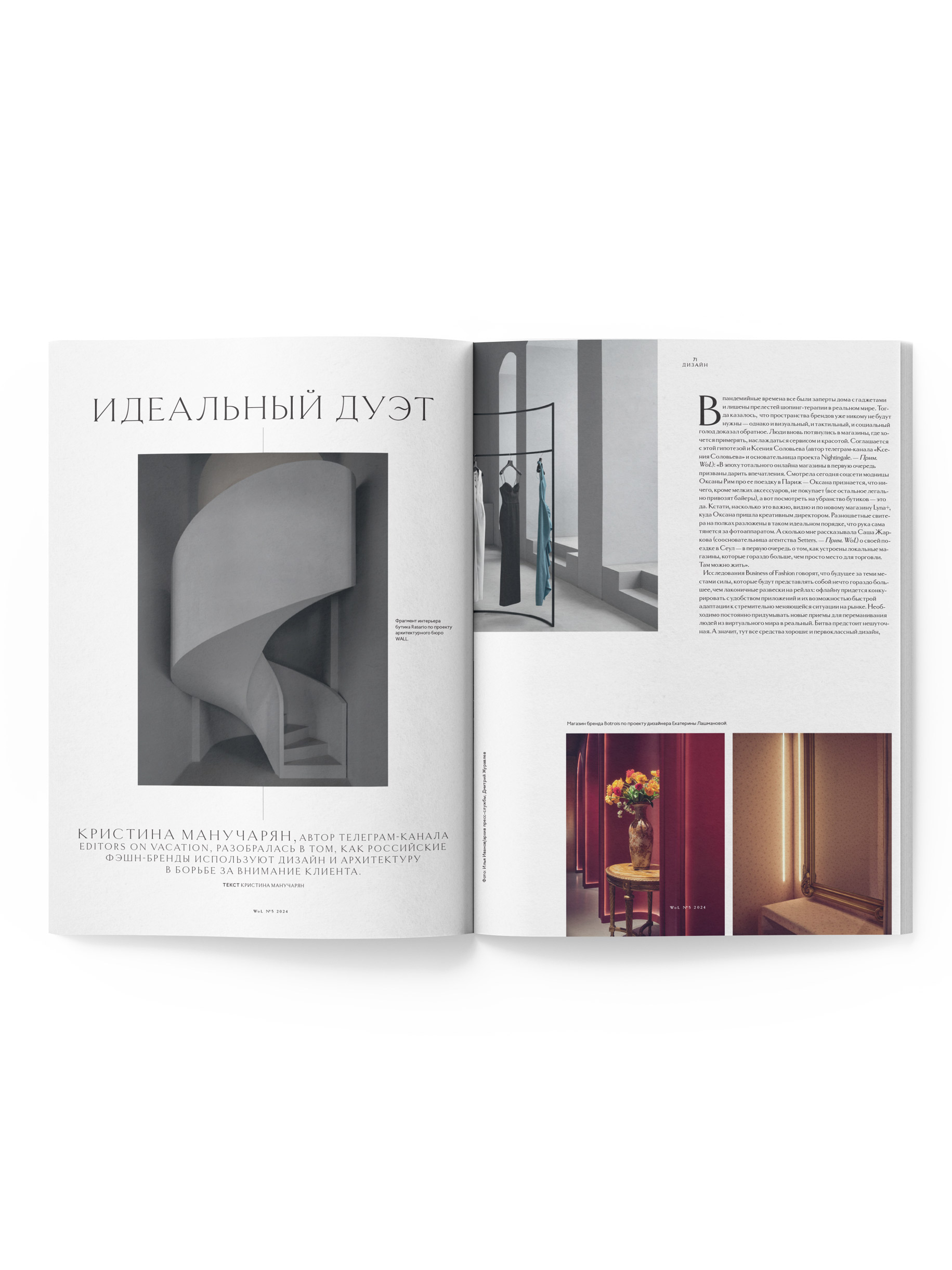 В пятом номере мы решили изучить тему моды через призму дизайна и архитектуры. Поговорили с представителями десятков российских брендов, заглянули в мастерскую-студию Александра Карпинского, в которой рождаются предметы со смыслом, пообщались с Азизой Азим, открывшей в центре Ташкента храм современной моды — концепт-стор Moona, а также узнали у основательницы лайфстайл-платформы NUSELF Ольги Паскиной о том, как создаются фэшн-стартапы. Мода коснулась и раздела «Интерьер» — мы показали квартиру стилиста Марианны Елисеевой, которую оформили архитекторы Quadro Room, побывали в гостях у стилиста и художника по костюмам Мари Коберидзе и event-дизайнера Вадима Жоля. В объективе Ольги Изаксон также предстала фотограф Анастасия Рябцева, а Сопо Папиашвили специально для WoL сняла в своем узнаваемом «драматичном» стиле ювелира и стилиста Михаила Барышникова, которого мы застали в Тбилиси. В разделе «Арт» по традиции собрали истории художников и интервью с представителями арт-индустрии. Понаблюдали за творческим процессом Миши Никатина, побывали в новом хранилище искусства на Волхонке коллекционера Антона Козлова и взяли большое интервью у директора МАММ Ольги Свибловой. Количество страниц: 208 ДxШxВ: 235x310x20 мм Доставка: оплачивается отдельно Доступно для самовывоза