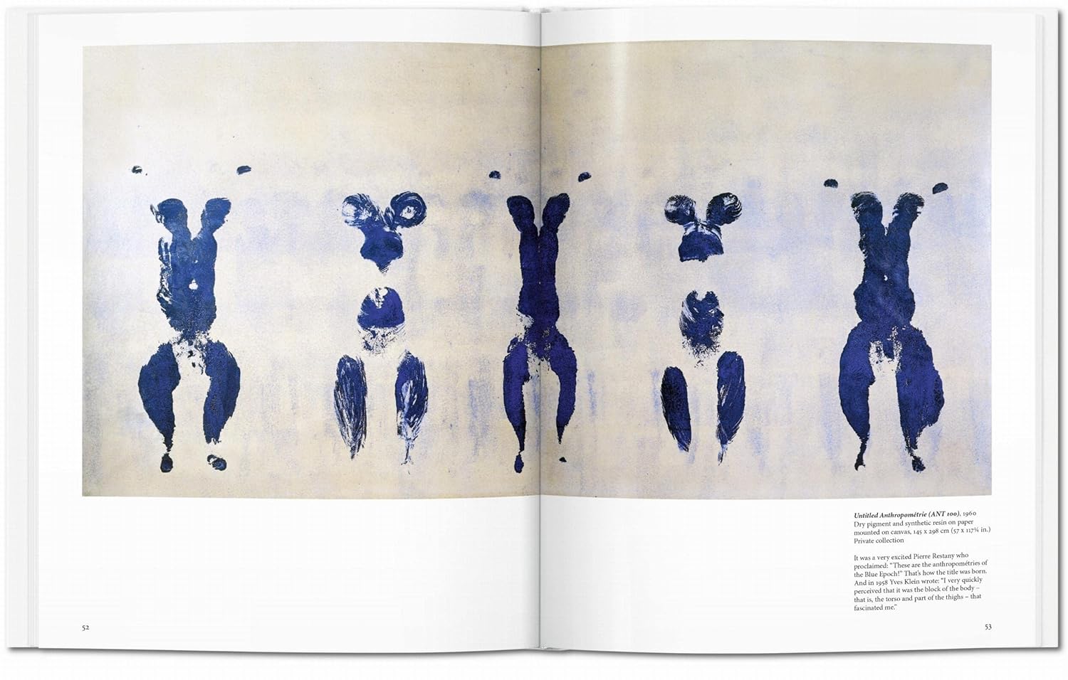 Ив Кляйн, художник, которому принадлежал ультрамарин. В середине 1950х Ив Кляйн (1928-1962) заявил, что новому миру нужен новый человек. Обладая своеобразным стилем и огромной харизмой, этот смелый художник сделал короткую, но насыщенную карьеру, создав за семь лет более 1000 картин, которые сейчас считаются основой послевоенного модернизма. Кляйн сделал себе имя, прежде всего, благодаря своим большим монохромным полотнам, выполненным в его собственном запатентованном синем цвете. Международный синий цвет Klein Blue (IKB), состоящий из чистого пигмента и связующего вещества, одновременно насыщенный и яркий, вызывающий воспоминания и декоративный, был задуман Klein как средство подчеркнуть нематериальность и бесконечность мира. Работы этой Голубой революции, кажется, переносят нас в другое измерение, словно загипнотизированных прекрасным летним небом. Кляйн также был известен своими живыми кистями, с помощью которых обнаженные женщины, раскрашенные в международный синий цвет Кляйна, оставляли отпечатки своих тел на больших листах бумаги. В этом обзоре представлены ключевые работы Кляйна, чтобы представить художника, который одновременно был шоуменом, изобретателем и пионером перформанса. Страница за страницей неизменно привлекательного международного синего цвета Klein Blue это одновременно и незаменимый путеводитель для мастера современного искусства, и размышление об уникальных эффектах одного цвета.