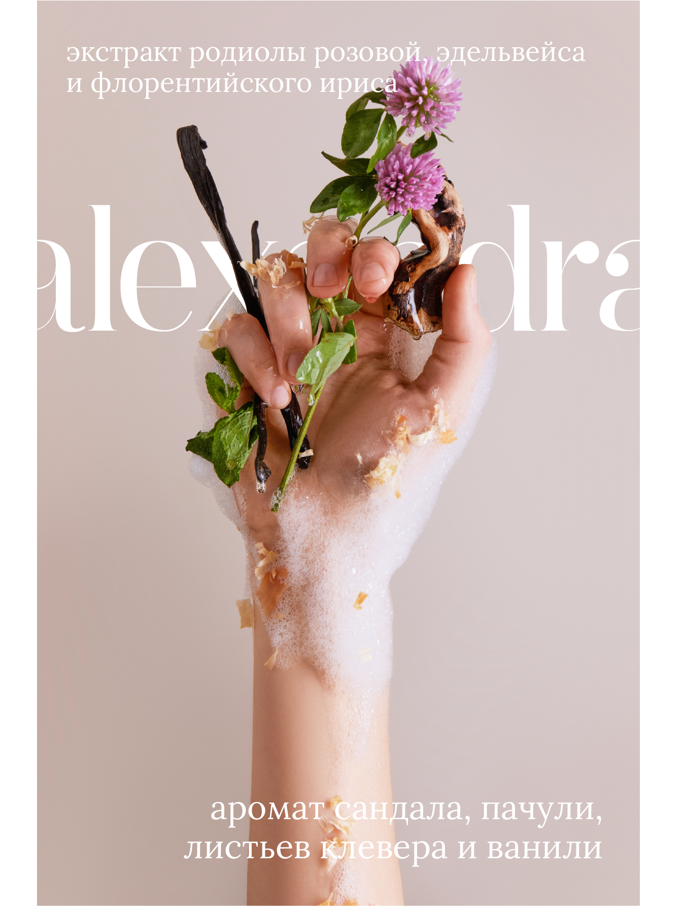 Состав (INCI): Aqua, Sodium Coco-Sulfate, Cocamidopropyl Betaine, Glycerin, Coco-Glucoside, Glyceryl Oleate, Parfum From Essential Oils, Sodium Chloride, Rhodiola Rosea Extract, Gnaphalium Alpinum Extract, Iris Florentina Root Extract, Guar Hydroxypropyltrimonium Chloride, Citric Acid, Benzyl Alcohol, Sodium Benzoate, Potassium Sorbate, Benzyl Benzoate, Eugenol, Citral